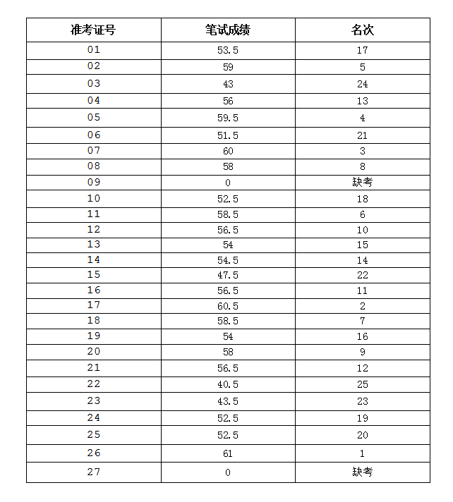根据《大龙窝索道公司技术员招聘公告》规定,2019年索道技术员招聘笔试已经结束,经审查同意,现将考生笔试成绩予以公布。