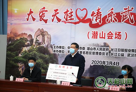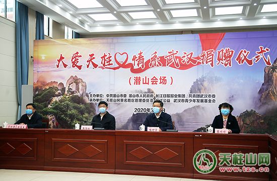 3月4日上午10时,潜山市、武汉市长江日报长江公益、青少年发展基金会举行“大爱天柱·情系武汉”云捐赠仪式。天柱山景区5285880元门票义售善款全部捐赠给长江日报长江公益、青少年发展基金会,用于关爱武汉战“疫”医护人员及子女。