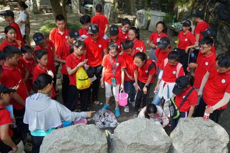 “天柱一峰擎日月,洞门千仞锁云雷”,白居易的诗曾令无数后人对天柱山充满遐想。在这个风景如画、山川秀丽的地方,营员们游走于山水间,见识了千形百态的奇峰异石和成群瀑布。同时,在安徽省地质调查院吴维平教授的带领下,营员们了解了天柱山独特的花岗岩地貌以及飞来石的形成过程等,不仅享受了一场视觉盛宴,更了解了背后的科学价值。