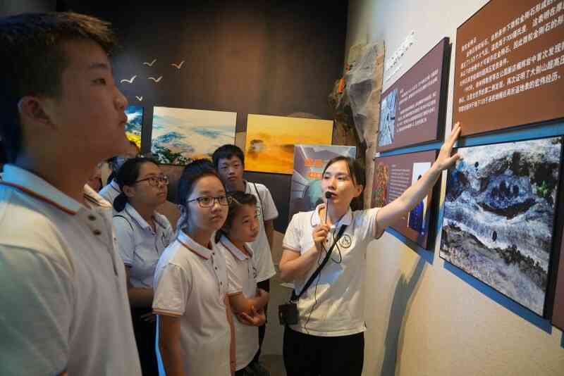 营员们在这里不仅观赏了天柱山地质景观,体验了天柱山地区丰富的历史文化内涵,还开启“地心”游历模式,感受18亿年以来,天柱山“石破天惊”“上天入地”的地质演化历程。丰富的岩石矿物标本、动植物标本和古生物化石标本,让营员们流连忘返,意犹未尽。