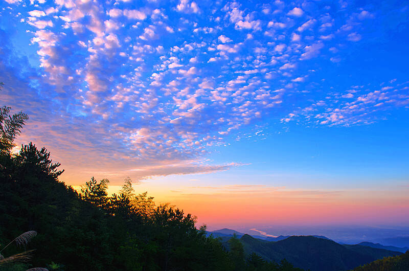夏天的日出、晚霞最为惊艳,群峰与烟云都披上美丽的霞光,浓烈的色彩,将天地间染成了巨大的水彩画。