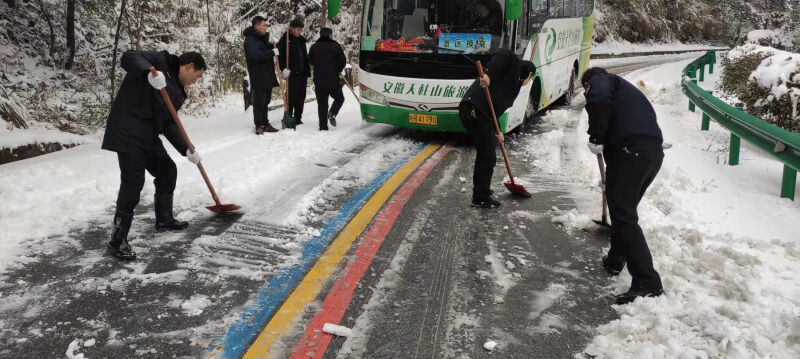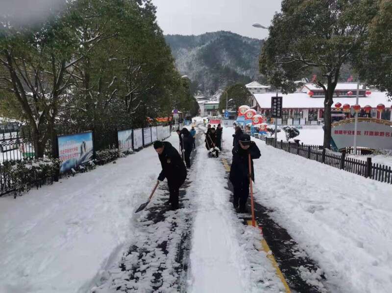 2月7日、8日,在风景区纪检监察工委书记江霞和旅游公司领导班子的带领下,天柱山人化身铲雪小分队,在城区包保网格南岳路段、景区通景公路、索道公司、天柱山庄等经营场所同时开展冰雪大作战。