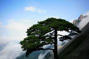 特色: 天柱山的千年古松不下万株,作为群松之首的天柱松王,屹立于绝壁之上,扎根于石缝之中,下临万仞,上逼蓝天,刚直挺立,有不可一世之慨。姊妹松、虬龙松、峭壁挂松等等,千姿百态,婀娜多姿。从天池峰下来,崖壁上杵着天柱松,“松生处,远离崖际,无一杂草灌木,人莫能及,时被云海所没。”出了逍遥宫你会发现,四面石壁围合,有“进退维谷”之感,从下方能看到右边峭壁上一株松树斜伸...